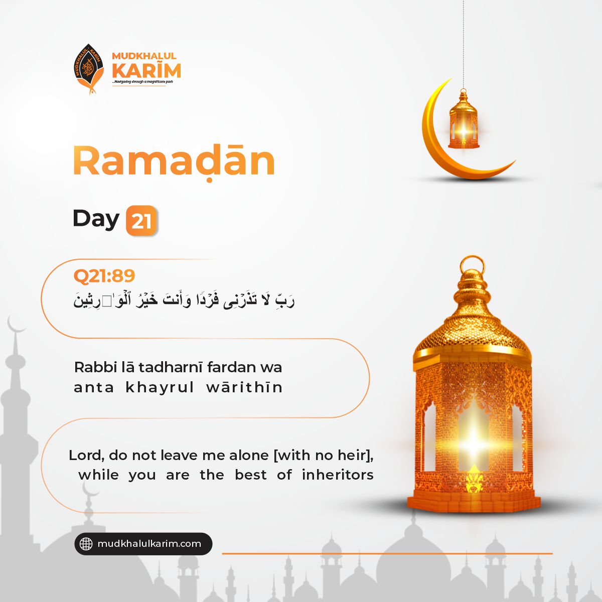 The twenty-first day of Ramaḍān reminds us of the profound reliance we place on Allāh as our ultimate inheritor and protector. This duʿā’ is a heartfelt plea to never be left alone or isolated at a time of need, knowing that Allāh is the best guardian and heir who manages all affairs after us.