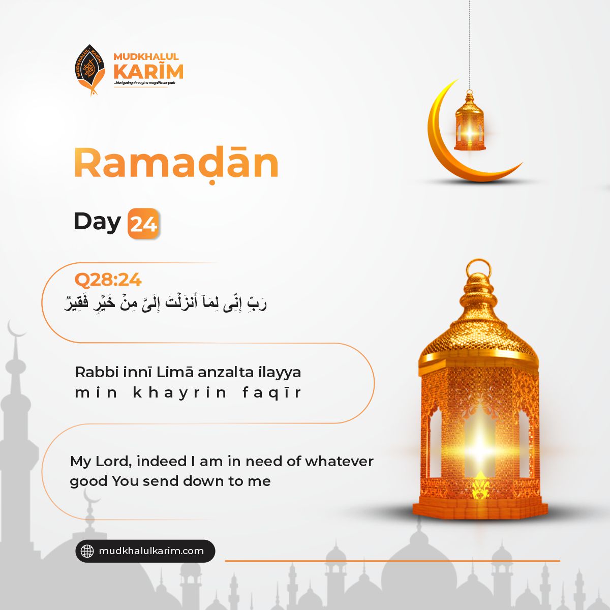 On the twenty-fourth day of Ramaḍān, we reflect on the humility and reliance of Prophet Mūsā (Moses) when he found himself in need. This verse is a sincere expression of need for the goodness that Allāh has revealed, recognizing that true wealth comes from His blessings alone. Today, remind yourself to approach Allāh with a humble heart, acknowledging your dependence on His grace and mercy. Ask Him to provide you with what is best, to fill your life with His goodness, and to strengthen your trust in Him through every circumstance. May Allāh enrich your heart with contentment and bless you with the best from His bounty.